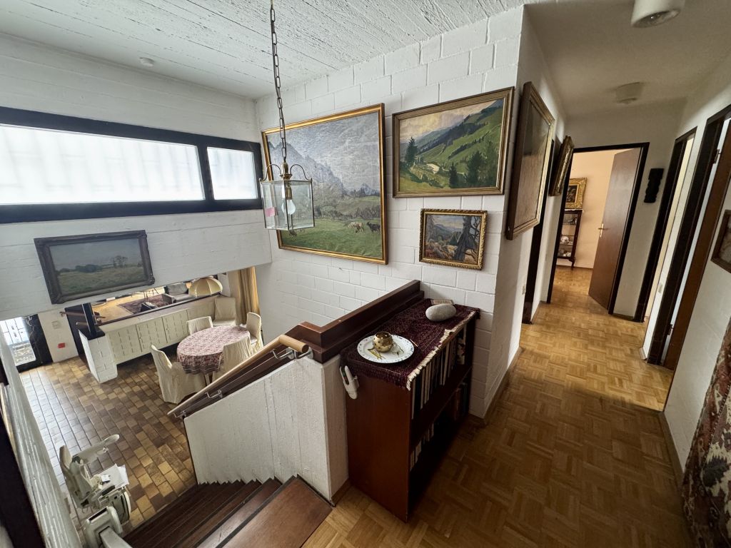 Über wenige Stufen erreichen Sie die Schlafebene auf dem oberen Level. Hier finden Sie 4 Zimmer und ein Badezimmer. Die Nutzungsmöglichkeiten sind vielfältig.